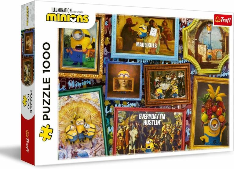 Minyonok 1000db-os puzzle - Trefl Hivatalos magyarországi forgalmazótól. Leírás: A Minyonok 1000 darabos puzzle a népszerű animációs film mókás kis sárga szereplőit hozza el neked egy igazán vidám és színes összeállításban. Ha te vagy a gyermeked rajong a minyonok bolondos kalandjaiért, akkor ezt a puzzle-t biztosan élvezni fogjátok. A puzzle képe különféle művészi al