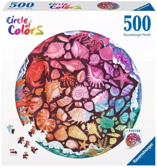 Puzzle 500 db kör - Kagylók Ez az 500 darabos kör alakú puzzle, amely kagylókat ábrázol, tökéletes választás mindazok számára, akik szeretik a kihívásokat és a természet szépségeit. A puzzle különlegessége, hogy nem a hagyományos négyszögletes formát követi, hanem egyedi, kör alakú kialakítással rendelkezik, ami még izgalmasabbá teszi az összerakást. A puzzle dar