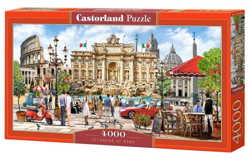 Castorland kirakók sokszínűségükről ismertek és igen széles választékban kaphatóak. Hagyományos képi témáik mellett különlegesebb, városokat és nevezetességeket ábrázoló kirakókat is találunk kínálatukban. Tartozékok: 4000 mozaikdarab - A kirakott kép mérete: 138 x 68 cm Róma pompája Termékcsalád: 4000 Minőségi termék. Származási ország: Lengyelország A kir