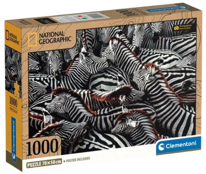 Amennyiben Ön is kedveli világunk rejtelmeit és csodáit, köztük a vadon elképesztő pillanatait, a Clementoni 39729 National Geographic Collection Compact puzzle - Zebrák készlete fantasztikus kikapcsolódást és élményeket tartogathat Önnek. Hiszen a némi rutint és türelmet igénylő, ugyanakkor káprázatos jelenetet megelevenítő 1000 db-os kirakó bárki képzeletét elragadha