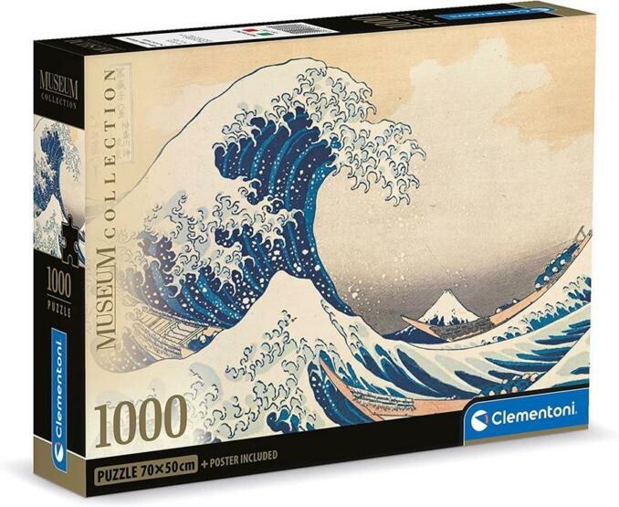 A Clementoni 39707 Museum Collection Compact puzzle - Hokuszai: A nagy hullám Kanagavánál készlet ezúttal nem csak lenyűgöző művészi élmény t kínál, hanem a környezeti terhelés ellen is tesz. Mivel a puzzledarabkák ugyanolyan professzionális minőség ben, ám kisebb méretű doboz ban érkeznek a tulajdonosokhoz, ahogy minden Clementoni Compact puzzle . Ezáltal ez a szett tudat