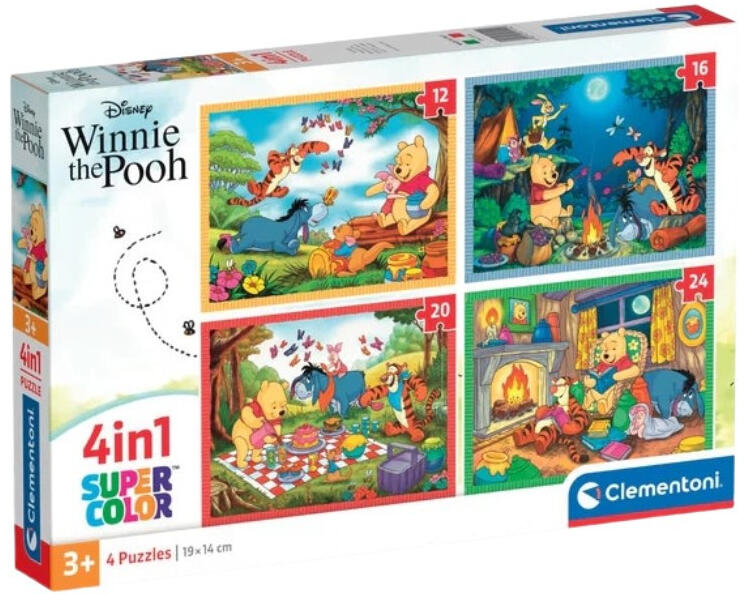 A Clementoni 21514 Super Color 4 az 1-ben puzzle - Micimackó kirakó készlete újabb bájos kalandra invitál minden Százholdas Pagonyért rajongó csemetét már 3 éves kortól. Mert a boldog kis tulajdonosok pillanatok alatt megteremthetik a Micimackó és barátai-mesék fantasztikus hangulatát szobájukban, amíg darabról darabra összeillesztik a puzzle elemeit, és végül megalkotják