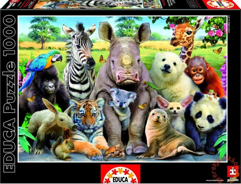 Puzzle gyerekeknek és felnőtteknek It's a Class Photo motívumban . A képkirakón kedves állatok láthatóak, mintha osztályképnek pózolnának. A képen különböző állatok láthatóak, mégpedig orrszarvú, fóka, koalamaci, mókus, jegesmaci, pandamaci és más állatok. A csomag 1000 drb elemet tartalmaz. Puzzle nagyobbaknak összeillesztés után egy képet jelenít meg. A puzzle ele