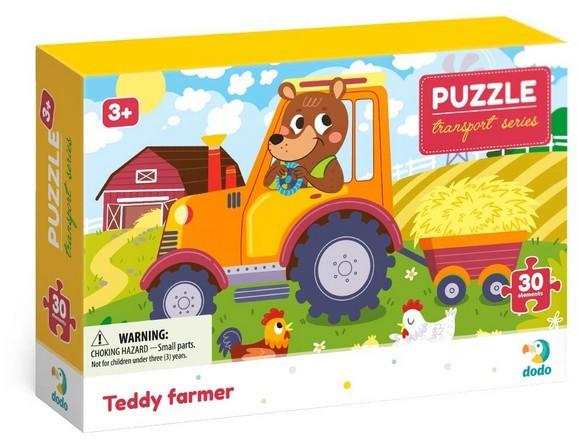 A Dodo puzzle - Szakmák: Farmer készlet ezúttal egy igazán izgalmas helyre kalauzolja a piciket, ugyanis a kis tulajdonosok egy szorgos medve tanyáján kalandozhatnak. A mackó éppen a traktor ban ül, és készül a betakarításra, ezalatt az idő alatt pedig szénát szállít. Körülötte baromfik várják, hogy hátha elő tudnak kapirgálni néhány finom falatot a földből. Ebben se