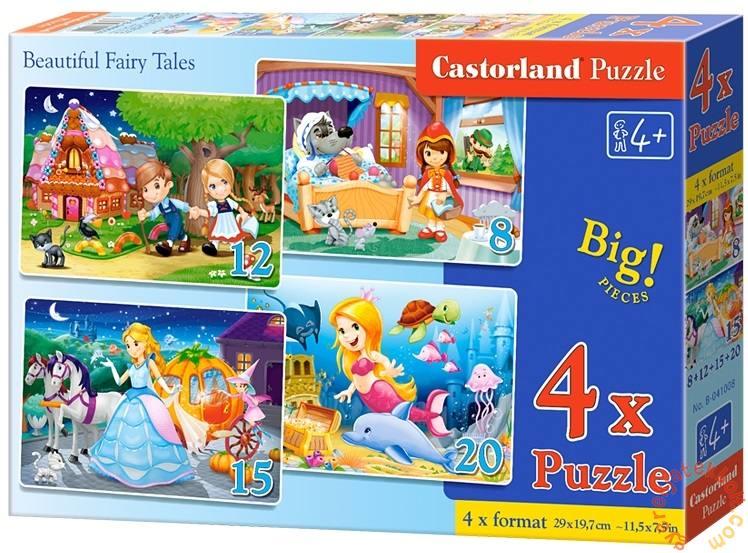 Gyönyörű mesék 4 az 1-ben puzzle - Castorland Hivatalos magyarországi forgalmazótól. Leírás: Ezeket a klasszikus tündérmeséket minden kislány már kicsi korától ismeri és élvezettel hallgatja azokat. A történetek mind boldog véget érnek, de tanulságos eseményekkel teli mindegyik. A kirakós dobozában 4 kép kirakásához való darabka van, melyek mind más-más darabszámú