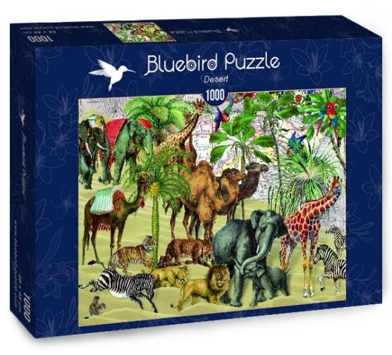 A francia Bluebird 2019 óta van jelen a kirakók világpiacán. Magas minőségű, környezettudatos technológiával készült, mégis megfizethető áron elérhető puzzle képei közt elsősorban művészi alkotások találhatók. Az 1000 db-os Bluebird - Desert puzzle képén a német Barbara Behr formatervező egyik alkotása látható, melyen a sivatagban élő, különleges állatok látha