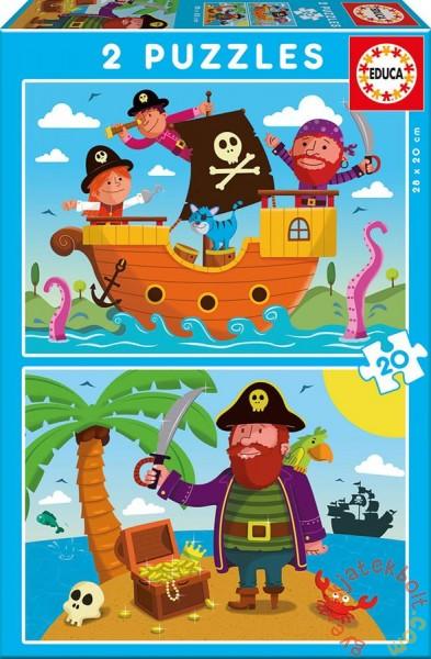 Puzzle gyerekeknek Kalózok motívummal örömet szerez minden gyerkőcnek 3 éves kortól. A képkirakón igazi mesébe illő jelenetet láthatunk - kalózokról, akik a tenger habjaival küzenek és keresik az elrejtett kincset. A puzzle 2x20 részes. Az elemek összeillesztésével két egész képet kapunk. A képkirakó minőségi alapanyagból készült. Megfelel a biztonsági előírásokna