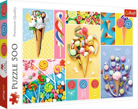 Kedvenc édességek 500 db-os puzzle - Trefl Hivatalos magyarországi forgalmazótól. Leírás: Ha egy igazán különleges és vidám színű képpel szeretnénk feldobni a gyerekszobát, vagy akár a nappalit, akkor a Kedvenc édességek puzzle remek választás. Az ötszáz darabból összeállítható kép színesebbnél színesebb nyalókákkal, cukorkákkal és fagylalttal biztos, hogy mind