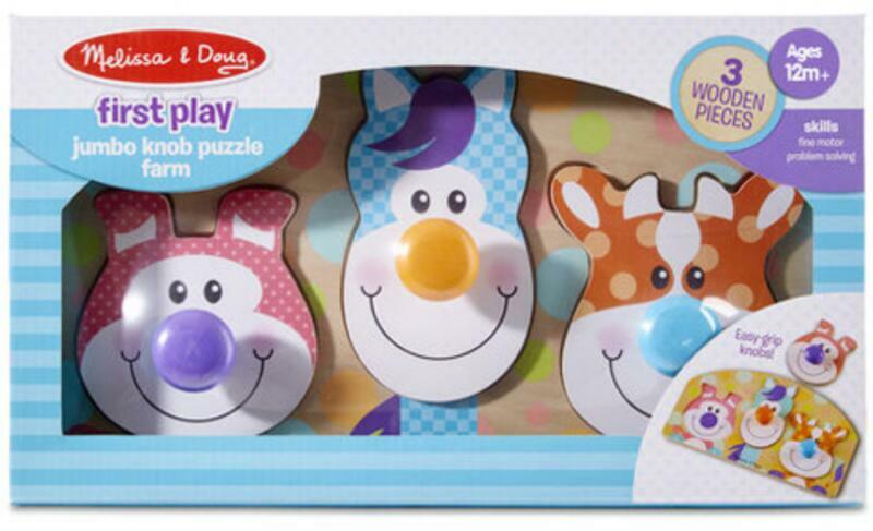 A kis kezek, hatalmas képzelőerővel imádni fogják ezt a barátságos, fából készült farmállatos óriás kirakóst! A mosolygós malac, ló, és tehén orrának helyén egy gomb található, amit könnyen meg fog tudni ragadni gyermeked. A kisbabák és a nagyobbacska porontyok el lesznek kápráztatva ettől a párosító játéktól, ahol a darabokat össze kell egyeztetni a 35 x 20 cen
