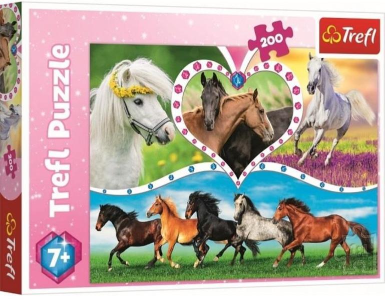 Csodaszép lovak - Puzzle 200 db-os Trefl A Csodaszép lovak nevű Puzzle 200 db-os Trefl egy lenyűgöző játék, melyen keresztül élvezhetjük a lovak iránti szeretetünket és rajongásunkat. Ez az izgalmas játék lehetőséget kínál arra, hogy újra és újra felfedezhessük az állatok varázslatos világát. A lovak szépségének minden részletét megtalálhatjuk ebben a 200 darabos