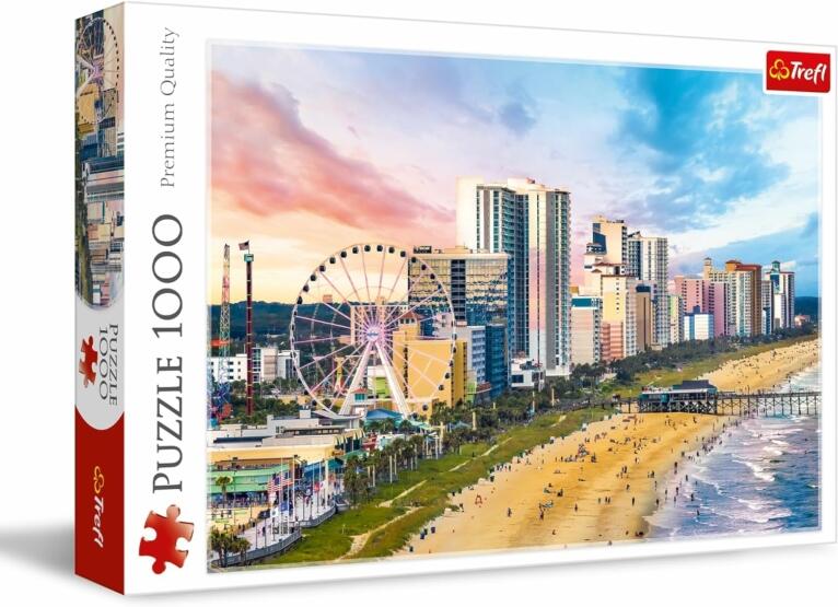 Tefl kirakók kiváló minőségű, speciális fényvisszaverő papír felhasználásával, ökológiai anyagból készülnek, amely megkönnyíti az összeillesztést. A Trefl - Myrtle Beach, Dél-Karolina - 1000 db-os puzzle című kirakón egy csodálatos légi felvétel látható, Dél-Karolina partjáról.