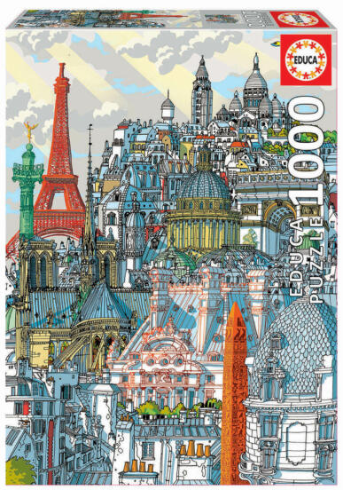 Paris puzzle örömet szerez minden képkirakó rajongónak a spanyol Educa vállalat műhelyéből, melyen Carlo Stanga híres illusztrátor művészien megjelenítő Párizs ábrája jelenik meg. Az egyedi puzzle csomag 1000 darabos . Puzzle minőségi alapanyagból készült és összeillesztés után egy képet jelenít meg. Az elemek megfelelnek a biztonsági szabványoknak - biztonságosak g