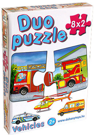 DUO Puzzle SOS járművekkel - D-Toys Hivatalos magyarországi forgalmazótól. Leírás: A szett elemei játékos módon fejlesztik a legkisebbek koncentrációját, logikáját és memóriáját is, valamint a gyerekek ismereteket szerezhetnek az SOS mentőjárművekkel is. A két elemből álló puzzle duo képpárokon mentőautó, mentőhelikopter, tűzoltó- és rendőrautó, repülőgép, bu