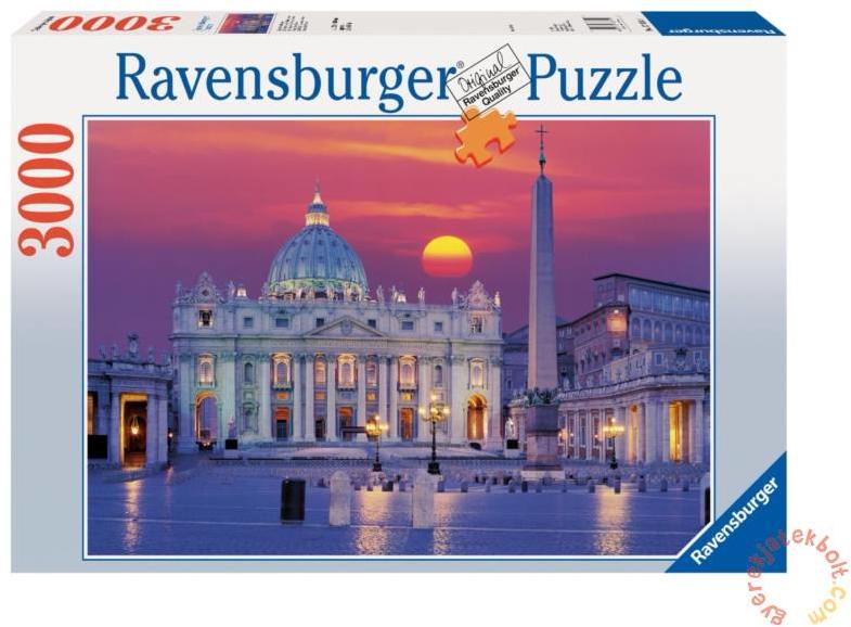 Gyártó: Ravensburger Modell: Szent Péter Katedrális 3000 db-os (17034) Leírás: A Ravensburger Szent Péter Bazilika 3000 darabos panoráma puzzle. A precízen vágott mozaikdarabok könnyen illeszthetők egymáshoz, az elemeket nem tudod rossz helyre tenni. A panoráma puzzle kirakott méretei: 121 x 80 cm. Tulajdonságok: Életkor: 14 - 99 éves korig Ajánljuk: lányoknak és fiúknak Kate