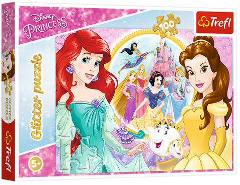 Disney Hercegnők: Ariel és Belle 100db-os csillámló puzzle - Trefl Hivatalos magyarországi forgalmazótól. Leírás: A mesebeli hercegnők tűnnek fel ezen a színpompás képen, melynek két főszereplője Arielle és Belle. A puzzle összesen 100db elemből illeszthető össze, különlegessége hogy a felülete csillámos anyaggal borított, így még ltványosabb lesz a fényben ragyogva
