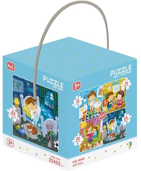 Bűvölje el csemetéjét a Dodo puzzle 4 az 1-ben - Napi feladatok készlet jóvoltából, amelyben a kicsik 4 db mókás napi rutint ábrázoló képet rakhatják ki, így könyebbé válhat számukra a szokások kialakítása. Általuk felfedezhetik a hétköznapokat, mókás jelenetek segítségével . A képek 12, 16, 20 és 24 db minőségi kartonelemből rakhatók ki, így már a kis óvod