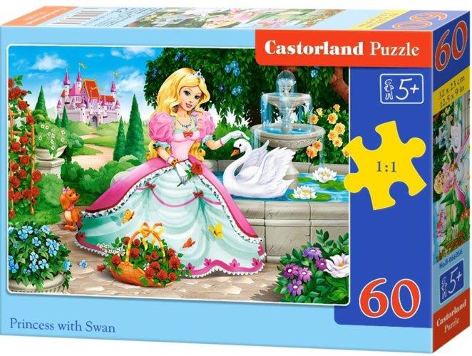 Hercegnő hattyúval 60db-os puzzle - Castorland Hivatalos magyarországi forgalmazótól. Leírás: Egy mesebeli hercegnő portréját láthatjuk egy csodás kertben, ahol egy kecses hattyú is úszkál a vízen, háttérben a gyönyörű kastéllyal. Minden kislány imádni fogja ezt a gyönyörű hercegnőt, és izgalommal fogja darabkáról darabkára összerakni a képét. 60 apró darabkáb