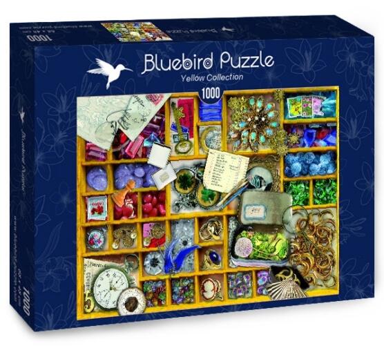 A francia Bluebird 2019 óta van jelen a kirakók világpiacán. Magas minőségű, környezettudatos technológiával készült, mégis megfizethető áron elérhető puzzle képei közt elsősorban művészi alkotások találhatók. Az 1000 db-os Bluebird - Yellow Collection puzzle képén a német Barbara Behr formatervező egyik alkotása látható, melyen egy sárga dobozkában kulcsok, éksz