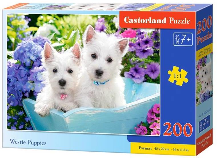 A Westie kiskutyusok nagyon aranyosak, így nem is csoda, hogy a kirakósokat előszeretettel mintázzák meg a róluk készült fotókkal. Egy aranyos Westie testvérpárt láthatunk ezen a kirakóson, aminek Te sem tudsz majd ellenállni, olyan aranyosak. A kirakós összesen 200 darabból áll össze, amik kiváló minőségüknek köszönhetően tökéletesen passzolnak egymásba, és strapab
