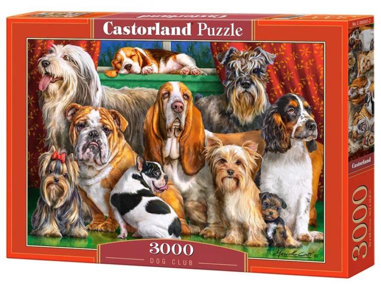 Kutya klub 3000db-os puzzle - Castorland Hivatalos magyarországi forgalmazótól. Leírás: A kutya klub egy remek puzzle, amin tíz nagyon aranyos kutyát lehet látni. Számold össze őket, határozd meg a fajtájukat, de persze mindezek előtt igen nagy feladat vár rád, ugyanis háromezer darabból össze kell állítanod a képet. A puzzle remekül megtanít a türelmességre és fejleszti