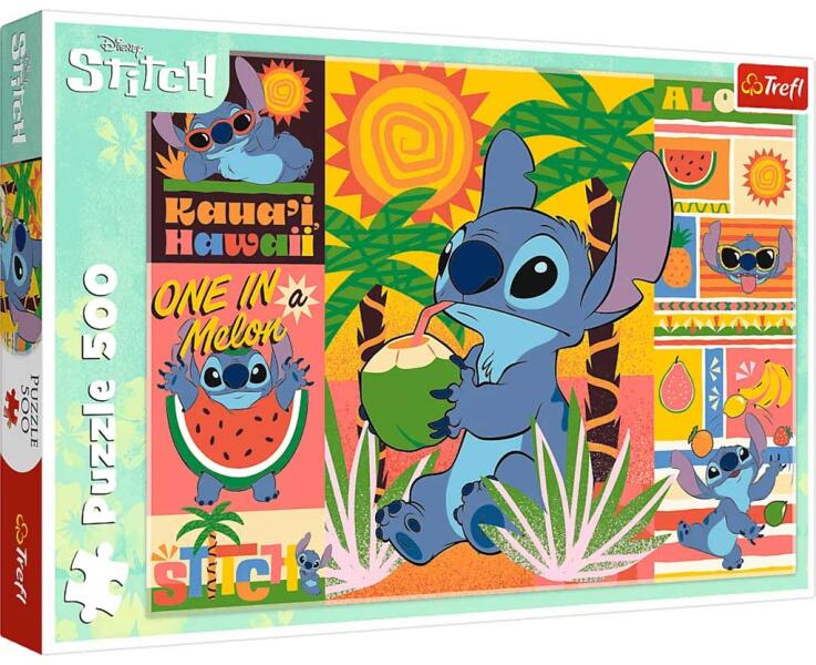 Disney: Stitch 500db-os puzzle - Trefl Hivatalos magyarországi forgalmazótól. Leírás: A Disney: Stitch 500 darabos puzzle vidám és egzotikus hangulatot áraszt, amely Hawaii varázslatos világába repít. A kép központi szereplője Stitch, a népszerű Disney karakter, aki most egy nyári vakáción élvezi az életet: kókuszdióból iszogat, dinnyét ölel, és felhőtlenül szórakozi