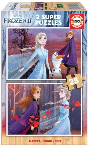 A fából készült Jégvarázs mesemotívumos gyerek puzzle minden csӧppség vágya már 4 éves kortól . Minden gyerkőc szívesen képkirakózik, főleg ha kedvenc hőse ábrája tárul elé. A csomagolás 2 kép kirakását teszi lehetővé, melyek képenként 25 darabból állnak (2x25 puzzle elem). Az ábrákon Anna és Elza hercegnők láthatóak, de természetesen a vicces Olaf is feltű