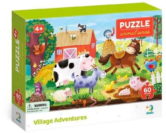 A Dodo játékgyártó cég a kirakóit kifejezetten a legkisebbek számára készíti. A puzzle nemcsak a szórakozás egyik remek formája, hanem játékos módon mutatja be a gyermekeknek a világot. A nagy méretű puzzle darabok kiváló minőségű, kemény kartonból készültek, ezáltal könnyen összeilleszthetőek és strapabíróak. A Dodo Animal Series 60 db-os puzzle - Falusi kalando