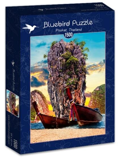 A francia Bluebird 2019 óta van jelen a kirakók világpiacán. Magas minőségű, környezettudatos technológiával készült, mégis megfizethető áron elérhető puzzle képei közt elsősorban művészi alkotások találhatók. Az 1500 db-os Bluebird - Phuket, Thailand puzzle képén a spanyol Carlos Castilla fotográfus egyik alkotása látható, melyen Thaiföld legnagyobb szigetének ré