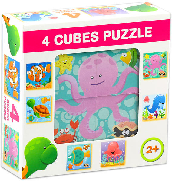 A legkisebbek figyelmét remekül leköti ez az aranyos rajzolt képekkel ellátott mesekocka. A Mesekocka 4 db-os Óceán élővilága készlettel a gyermekek az óceánok mélyén élő állatok világát ismerhetik meg. A kicsik megalkothatják a bohóchal, a teknős, a medúza, a polip, a bálna és egy hal képét. A mesekocka kirakóval való játék kiválóan fejleszti a legkisebbek logika
