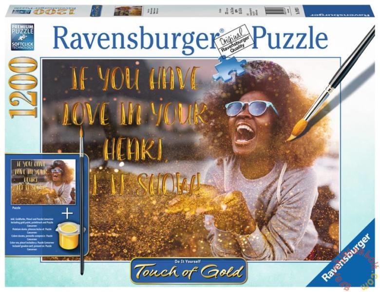 A Ravensburger újdonsága a Touch of Gold sorozat, ami mindenkiből előcsalogatja a benne lakozó művészt! Először rakd ki a képet, aztán engedd szabadjára a fantáziád és pingáld ki a gyönyörű arany festékkel a képet! A doboz a kirakón kívül tartalmaz egy tégely arany színű festéket, egy ecsetet és puzzleragasztót is! Puzzle darabszáma:1200 dbKép mérete:780 x 550 mmAj