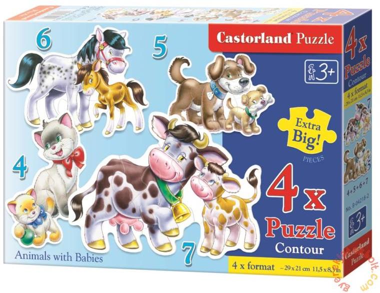 Castorland Sziluett puzzle - Állatok és kicsinyeik (B-04218) Ajánlott korosztály: 3 éves kortól Kiknek ajánljuk: lányoknak és fiúknak Darabszám: 22 db Gyártó: Az Állatok és kicsinyeik Sziluett puzzle (B-04218) a legkisebb korosztály számára készült. A puzzle kirakása számos képességet fejleszt, türelemre tanít, finomítja a kézmozdulatokat, fejleszti a precizitást, a ko