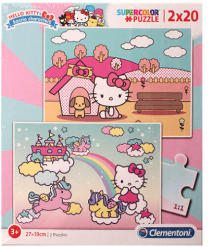 Hello Kitty Supercolor 2 az 1-ben puzzle 2x20db-os - Clementoni Hivatalos magyarországi forgalmazótól. Leírás: A Hello Kitty kis fehér cica figurája rendkívül népszerű a kislányok körében, így biztos, hogy ennek a puzzle-nek is hatalmas sikere lesz, ugyanis a dobozban két eltérő puzzle található, amelyeket húsz-húsz darabból kell kirakni a gyerekeknek. A Clementoni puzzle da