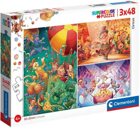 Cirkusz 3x48db-os puzzle - Clementoni Hivatalos magyarországi forgalmazótól. Leírás: Látványos színekkel és dekoratív mintákkal lehet a gyerekek szobájának dísze ez a puzzle szett, melyben rögtön három különböző összerakható képet is találnak. A Cirkuszi mintás képek színesek, így azonnal felkeltik a gyerekek érdeklődését. A puzzle képek mindegyike 48db elemből
