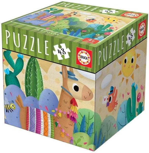 Puzzle Mini Box Lama a spanyol Educa vállalattól egy csodaszép képkirakó vidám láma motívummal kisfiúk és kislányok részére 4 éves kortól. Összeillesztett kép újra darabjaira szedhető és a dobozban tárolható. Képkirakózás nagyon jó hatással van a fantázia, elképzelőerő és manuális készség fejlesztésére, játék közben fejlődik a kicsik részletekre való odaf