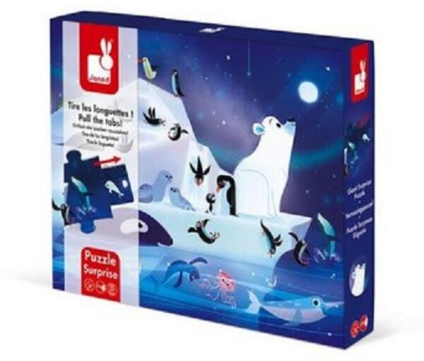A Janod Antarktisz-témájú gyermekpuzzle 20 darabot tartalmaz, és 2-4 éves korú gyermekek számára alkalmas. Ezek a rejtvények kellemes meglepetést rejtenek. A kirakón akár 3 ablak is van, amelyeken egy új képet fedezhetsz fel, valamint 5 kihúzható darabot az oldalán, amelyeken valami újat fedezhetsz fel. A rejtvények fejlesztik a gyermekek logikus gondolkodását, figyelmét és