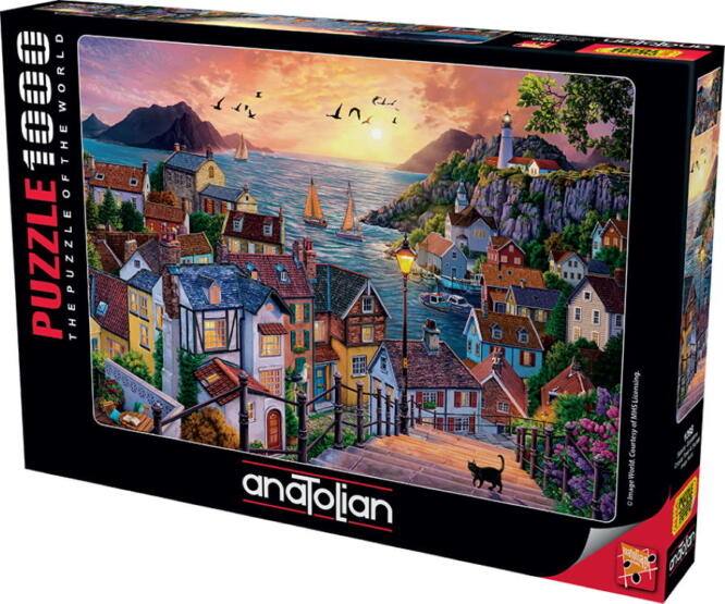 Az Anatolian folyamatosan figyelemmel kíséri az új technológiákat, puzzle alapanyagforrásokat, a modern művészeti koncepciókat és a fogyasztók ízlését. Ennek alapján minden korosztály számára megfelelő kirakókat gyárt. Az Anatolian 1000 db-os puzzle - Coastal Town at Sunset című képén egy szép kis tengerparti városka és öböl látható a naplementében.