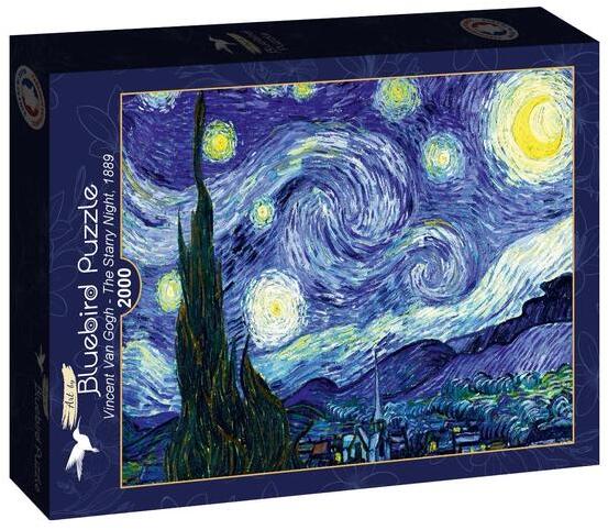 A francia Bluebird 2019 óta van jelen a kirakók világpiacán. Magas minőségű, környezettudatos technológiával készült, mégis megfizethető áron elérhető puzzle képei közt elsősorban művészi alkotások találhatók. A Bluebird 2000 db-os puzzle - Vincent Van Gogh - The Starry Night, 1889 puzzle képén Vincent Van Gogh Csillagos éjszaka című festménye látható.