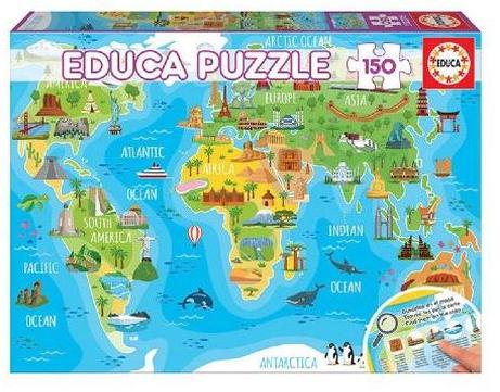 Gyermek puzzle Világtérkép műemlékekkel a spanyol Educa vállalat műhelyéből származik. A képkirakón világtérkép látható nevezetes épületekkel és műemlékekkel kiegészítve. Az összeillesztett puzzle újra darabjaira szedhető és dobozában tárolható. Képkirakózás nagyon jó hatással van a fantázia, elképzelőerő és manuális készség fejlődésére, szintén fejl
