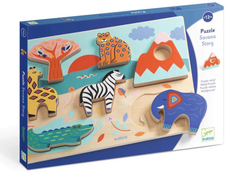 Djeco fa formaberakó játék Ez egy könnyen összerakható fa puzzle a szavanna állataival. A 3D állatfigurák lehetővé teszik, hogy a gyermek a képkirakáson kívül is játsszon az állatokkal. A fa állatfigurák megállnak önmagukban is. A tájkép formájú alaplap még élénkebbé, még vonzóbbá teszi ezt a formaberakót. 5 részes fa puzzle fa alapon A formaillesztő méretei: 21