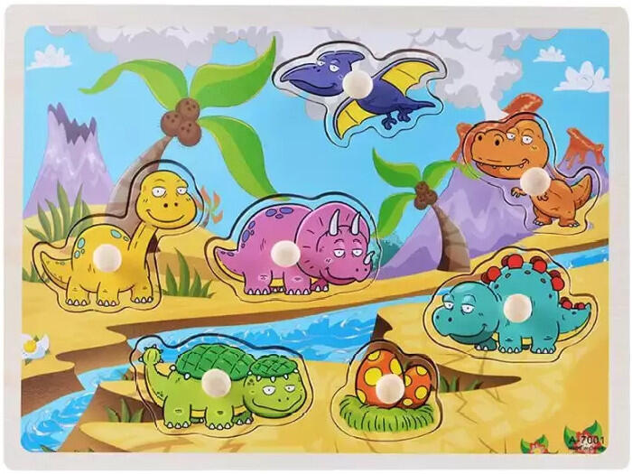 RAKTÁRRÓL AZONNAL! Fogantyús készségfejlesztő fa puzzle - Dínók Ezzel az aranyos, fogantyús fa puzzle segítségével a kisebb gyerekek megismerhetik a dínókat közelebbről. A színes képeket érdekesnek fogják találni a picik, ráadásul megismerkedhetnek a kölyök dínókkal is. A játék során gyermekünk megismerkedik a színekkel, formákkal és a dínók fajtáival. Mindezek
