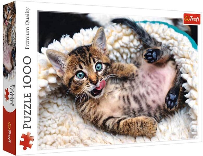 Szereted a kirakókat? És a cicákat? Na és a kiscicákkal mi a helyzet? De bizony, egy kiscicát rakhatsz ki ebből az 1000 darabos Trefl puzzle-ből, aki éppen jólesően nyalja meg a bajuszát a vacsora után. Segíts neki elhelyezkedni a kedvenc pihe-puha fekhelyén, hogy aztán jót aludhasson a teli pocakjával, és őt ismerve biztos, hogy máris halacskákkal vagy csibehusival fog álmo