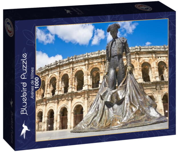 A francia Bluebird vállalat 2019-ben lépett piacra kiváló minőségű kirakóival, megfizethető áron. Fontos szempont számukra a környezettudatosság is, ezért kirakóik dobozait úgy tervezték, hogy minimális mennyiségű kartont használjanak fel a gyártás során. A Bluebird 1000 db-os puzzle - Arénes de Nimes című képen, a régi római amfiteátrum látható.