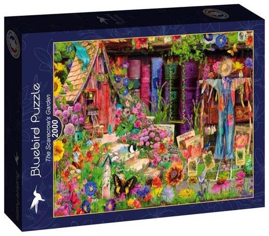 A francia Bluebird 2019 óta van jelen a kirakók világpiacán. Magas minőségű, környezettudatos technológiával készült, mégis megfizethető áron elérhető puzzle képei közt elsősorban művészi alkotások találhatók. A 2000 db-os Bluebird puzzle - The Scarecrow's Garden című képén egy megelevenedett könyvespolcot láthatunk, ahol egy gyönyörűen burjánzó kertet láthatun