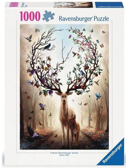 A Ravensburger a világ legnagyobb puzzle gyártója. Széles választékban kapható kirakói a minőséget és a sokszínűséget képviselik. A Ravensburger 1000 db-os - Csodaszarvas című képén egy csodaszép szarvas látható, akinek az agancsán megelevenednek a természet szépségei.