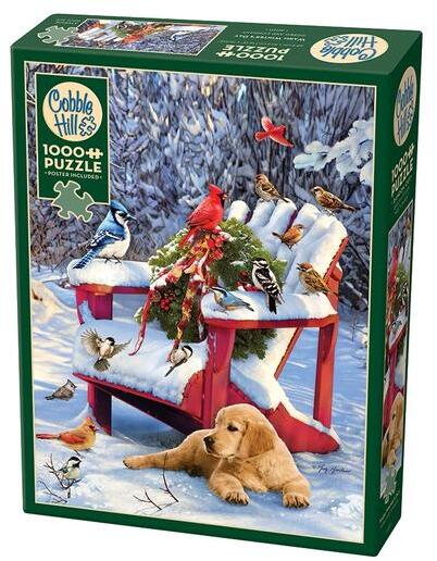 A kanadai Cobble Hill a nosztalgikus, színes, és mindemellett kiváló minőségű kirakókkal kívánja örvendetessé tenni a játék élményt kicsiknek és nagyoknak egyaránt. A Cobble Hill 1000 db-os puzzle - Warm Winter's Day című képen egy szép és meghitt tájképet mutat be, amelyen az erdőt hó és jég borítja, miközben a fenyőfa díszekkel és lámpákkal van feldíszítve.
