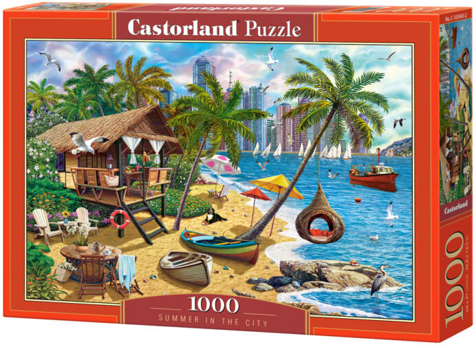 A Castorland kirakók sokszínűségükről ismertek és igen széles választékban kaphatóak. Hagyományos képi témáik mellett különlegesebb, városokat és nevezetességeket ábrázoló kirakókat is találunk kínálatukban. A Castorland 1000 db-os puzzle - Summer in the City című képen egy mesés nyaraláson találhatjuk magunkat, pálmafákkal és mesés tengerparttal , kirakást k