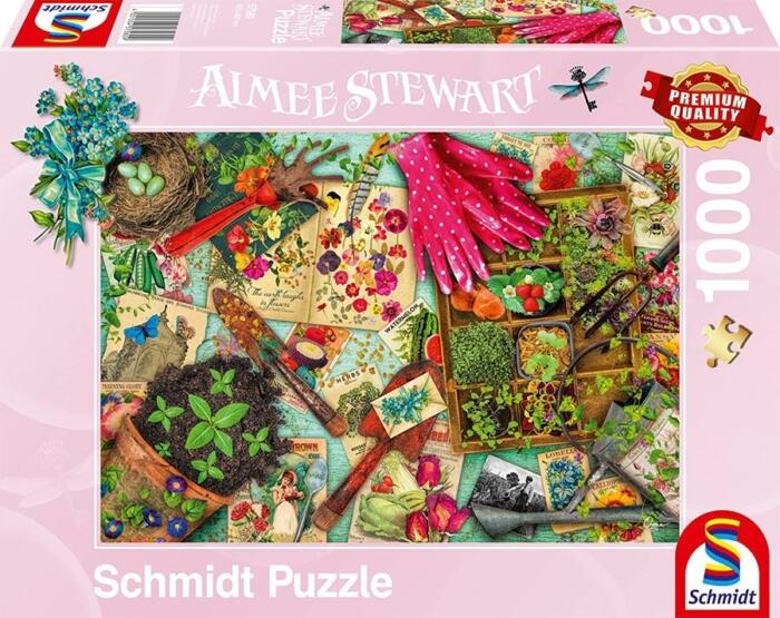 A Schmidt puzzle kiváló minőségű, német gyártmányú kirakó. A speciális matt lakk felhasználás következtében a kirakók fényvisszaverődés nélkül tárják elénk a szebbnél szebb képeket. A Schmidt 1000 db-os puzzle - Everything for the garden, Aimee Stewart egy művész, aki sokoldalú és kreatív munkái miatt ismert. Everything for the Garden című képe egy nagyon részle