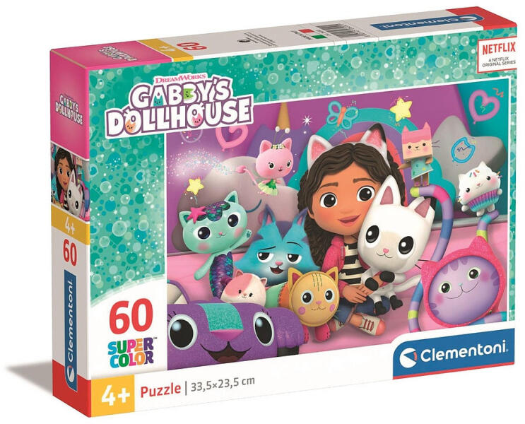 Gabby's Dollhouse, Gabi babaháza puzzle 60 db-os Clementoni Mérete: 33,5 x 23,5 cm Doboz mérete: - SuperColor kollekció - kiváló minőség - 4 éves kortól ajánlott