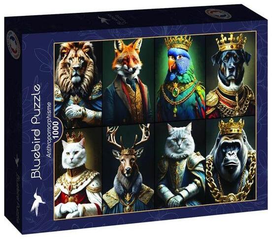 A francia Bluebird 2019 óta van jelen a kirakók világpiacán. Magas minőségű, környezettudatos technológiával készült, mégis megfizethető áron elérhető puzzle képei közt elsősorban művészi alkotások találhatók. Az 1000 db-os Bluebird puzzle - Anthropomorphisme , azaz antropomorfizmus, élő vagy élettelen dolgok, jelenségek, elvont fogalmak emberi vagy emberinek hitt tula