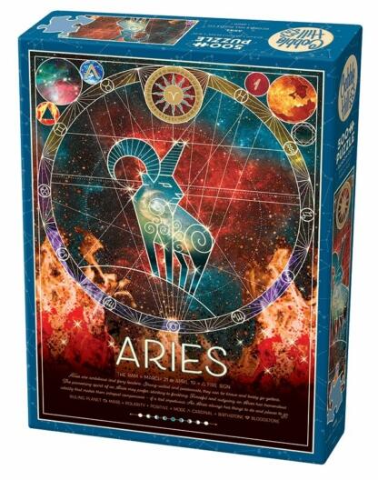 A kanadai Cobble Hil l a nosztalgikus, színes, és mindemellett kiváló minőségű kirakókkal kívánja örvendetessé tenni a játék élményt kicsiknek és nagyoknak egyaránt. A Cobble Hill 500 db-os puzzle - Aries (45011) kirakón a Kos csillagjegy látható. A Kosok ambiciózus és tüzes vezetők. Erős akaratúak, szenvedélyesek, bátrak és céltudatosak.